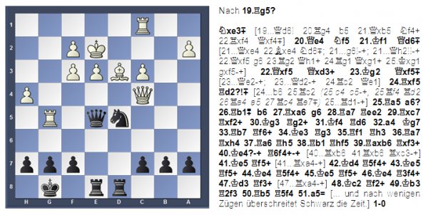 Dann ging es hin und her. Brett 4 der Pfälzer verpasste anscheinend eine Gewinnfortsetzung, der Ausgang an Brett 3 des Parallelkampfs war unklar, doch Patti schien etwas den Faden zu verlieren.