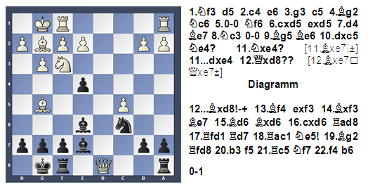 Tatsächlich konnte Patti schließlich nur remisieren, doch Bayern gewann an Brett 4 und schließlich sogar noch an Brett 3. Vielen Dank nach Bayern für diese Schützenhilfe! Das Turnier gewann Würtemberg, die in der Schlussrunde auch Baden noch bezwingen konnten. Herzliche Glückwünsche nach Würtemberg!